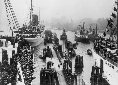 Abfahrt der KdF-Schiffe »Der Deutsche« und »St. Louis« von Hamburg nach Madeira